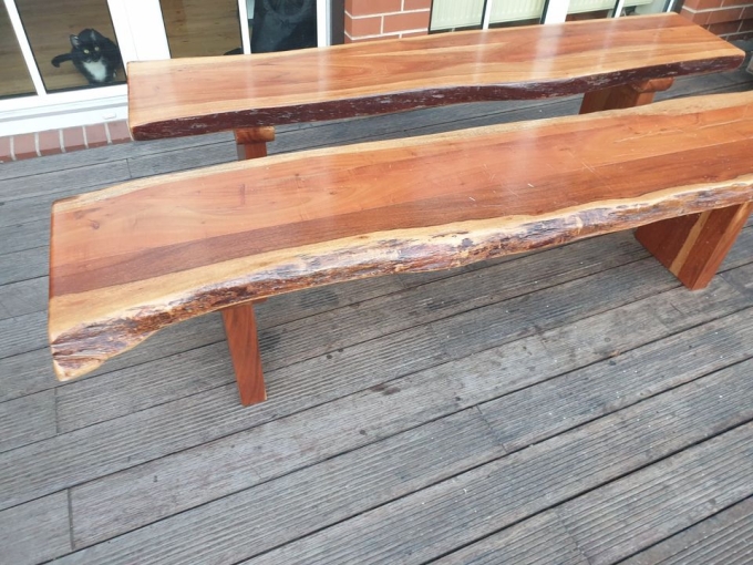 Wir verkaufen hier unsere zwei Sitzbänke mit Baumkante... Die Bänke sind 195 cm lang und 42-43 cm breit... Leider passen die Bänke nicht mehr zu unserem Esstisch und wir wollen sie nun verkaufen... Die Bänke haben ein paar Kratzer auf der Sitzfläche, sind aber sonst in einem guten Zustand... Alle Verfärbungen sind durch den Rohstoff Holz bedingt... Die Bänke sind technisch einwandfrei und wackeln/kippeln nicht und sind stabil wie am 1. Tag... Aufgrund des hohen Eigengewichts entfällt die Versandmöglichkeit und es kommt nur eine Abholung in Frage... Da es sich um einen Privatverkauf handelt ist die Rückgabe ausgeschlossen...