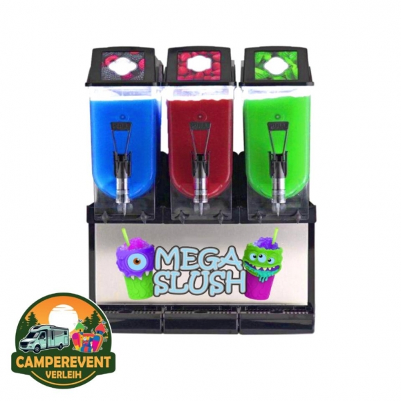 Mieten Sie unsere MEGA SLUSH Eis Maschine mit 3 x 12 Liter Kammern.