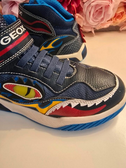 Geox Turnschuh in 35. Wunderschön mit Drachenaugen die leuchten. Kann man ein und ausschalten. Erst gekauft schon zu klein!