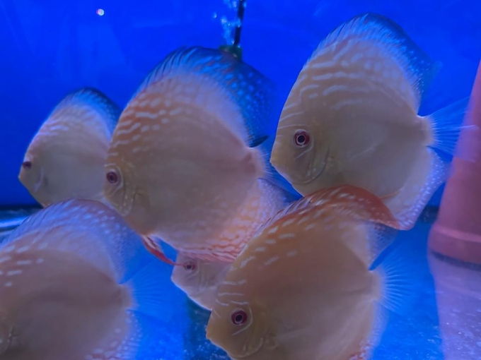 Discus albíno yellew, red, pigion ,