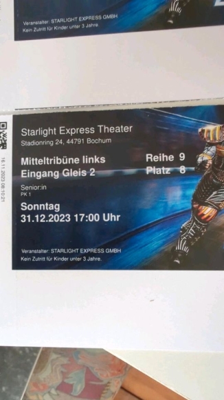 verkaufe 2 Tickets für starlight Express 31.12.23