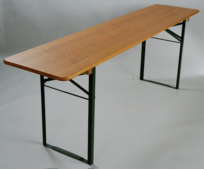 Langlebiger und robuster Stehtisch in traditioneller Festzelt-Optik. Es handelt sich um eine gut verarbeitete Klappgarnitur. Ideal für Geschäftsevente oder private Feiern.