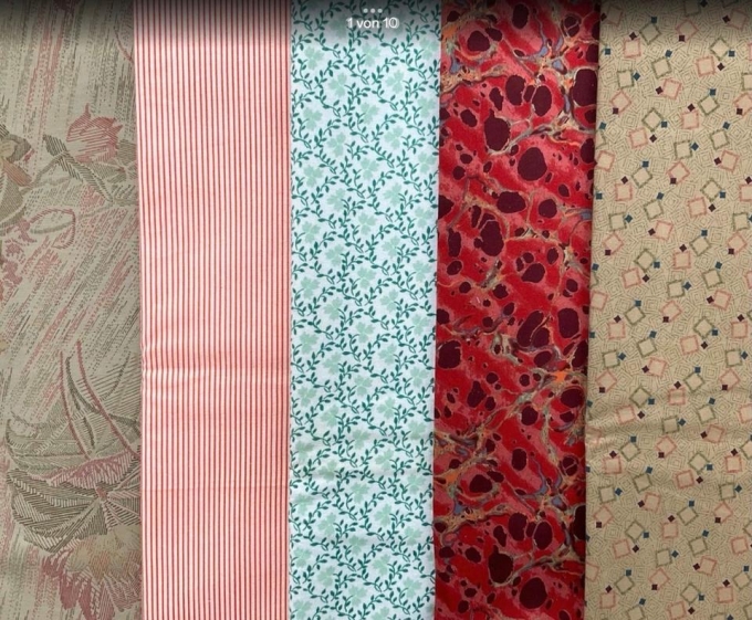 Biete die Reste meiner „roten + olivfarbenen “ Stoffe, mit denen ich sehr gern Patchwork gemacht habe. Alle Stoffe sind gewaschen, können so weiterverarbeitet werden. 100% Baumwolle.