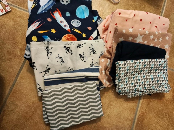 Stoffsammlung Reste Baumwolle Weltalltag, Totenkopf, Sterne, Herz