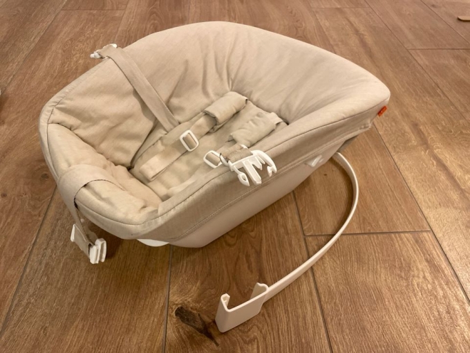 Ich verkaufe unsere Stokke Tripp Trapp Newborn Babyschale inkl. Spielzeughalter. Der Bezug ist beige und waschbar. Die Gurte weisen normale Verschmutzungen auf. Der Gurt funktioniert einwandfrei.