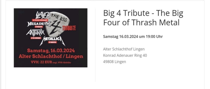 SUCHE!!! 1 Karte für "The Big 4" am 16.03.24 im Schlachthof