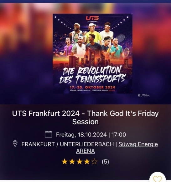 Suche 2x Tickets am 18.10 für UTS Tennis in Frankfurt