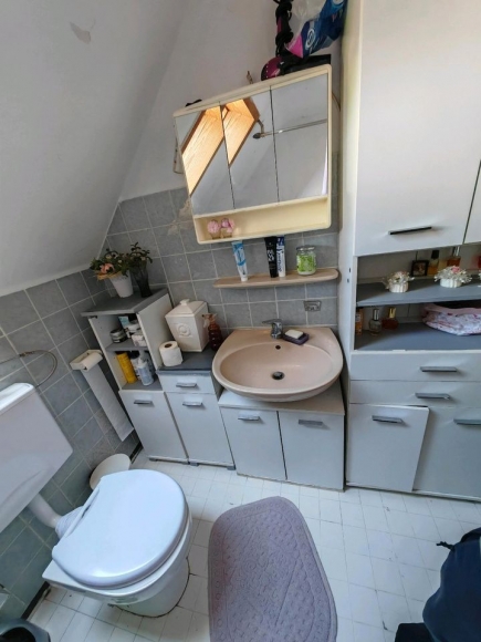Badewanne wird durch eine Dusche ersetzt und das WC wird auch abgedeckt und gefliest.