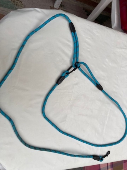 vielleicht 3x benutzt, super praktisch, weil man sich die Leine um den Hals bzw. quer über den Körper legen kann. Ich habe noch eine weitere Leine in einer anderen Farbe, die ich täglich und nur noch benutze. Man geht viel entspannter, wenn man beide Hände frei hat.