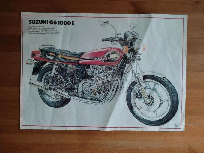 Mini-Poster einer Suzuki GS1000 E als Schnittmodell.