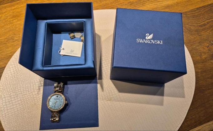 Verkaufe meine wunderschöne Armbanduhr von Swarowski mit blauem Zifferblatt und vielen Swarowskisteinen.