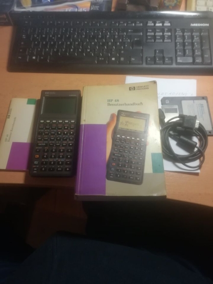Taschenrechner HP 48S komplett mit Datenschnittkabel und 3,5" Utility Disk, Sammlerstück von 1992