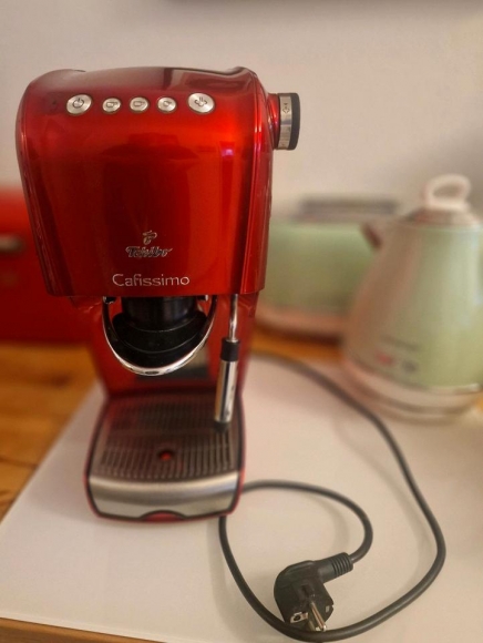 Rote Tchibo Cafissimo Classic Kaffeemaschine für Espresso, Kaffee Creme, Filterkaffee, Milchschaum zu verkaufen.