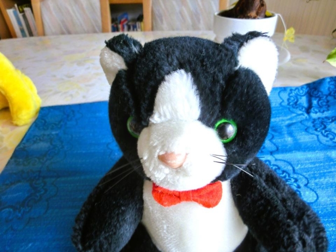 TEDDY SCHWARZ-WEISS MIT ROTEM SCHLEIFCHEN, unbespielt