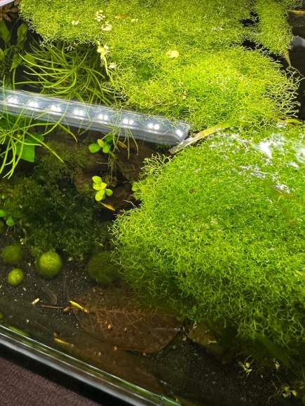 Ich habe eine Art von Riccia fluitans, die auch als Aufsitzpflanze toll wächst und gedeiht.