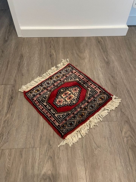 Verkaufe einen Teppich mit einer Länge von 46cm und einer Breite von 30cm.