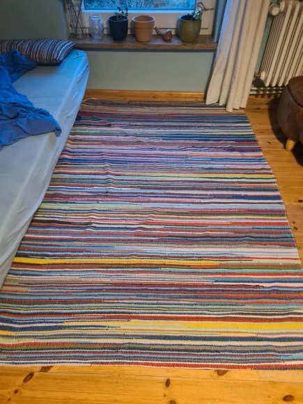 Wir verkaufen hier einen tollen, schweren Baumwollteppich. Er lag bisher nur im Gästezimmer, und hat keine Mängel.