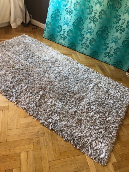 2 Teppiche Maße 70 x 2,50 Hochflor in beige. Geben ein tolles Bild ab. Sehen zusammengelegt aus, wie einer und sind somit flexibel einsetzbar.