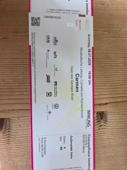 Zwei Karten für Carmen abzugeben. Preis gilt für beide Karten.
