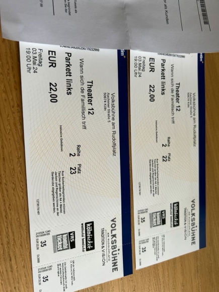 Verkaufe zwei Tickets für das Theaterstück „Wann sich de Famillisch trifft „ im alten Millowitschtheater für den 3.5.24 In der zweiten Reihe