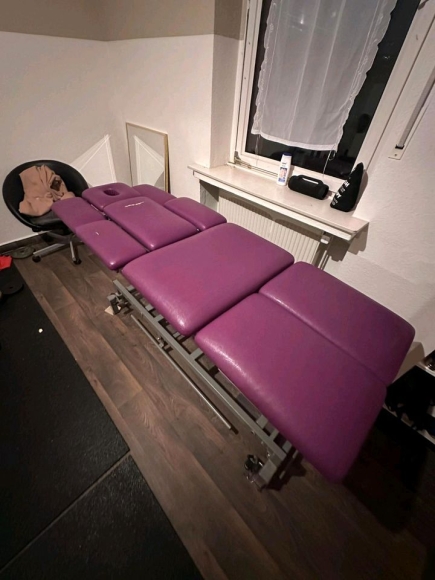 Die Liege ist vielseitig einstellbar durch die verschiedenen Unterteilung. Die Höhenverstellung funktioniert elektrisch.