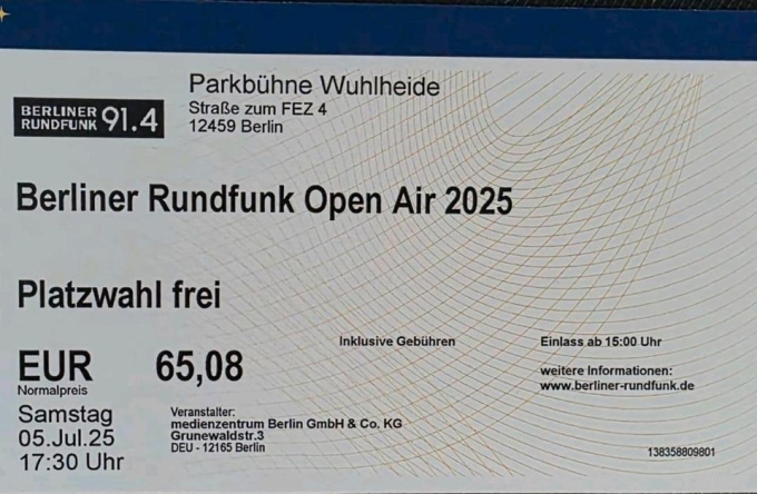 Ticket 91,4 Berliner Rundfunk Open Air 05.07.2025