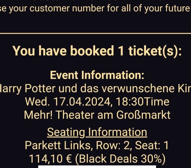 TICKET Harry Potter und das verwunschene Kind