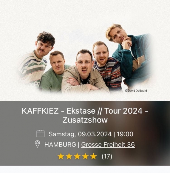 Biete ein Ticket für das KAFFKIEZ Konzert am 09.03.24 in Hamburg an.