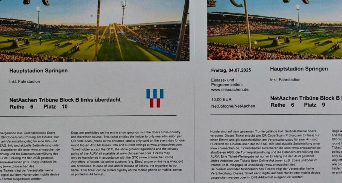 Biete zwei Tickets CHIO für Freitag, den 4.7.2025 zum regulären Preis.