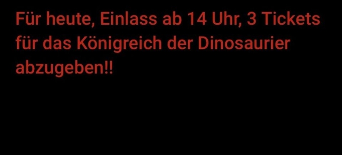 Leider 3 Tickets zu viel gekauft, deswegen für ganz spontane, für heute noch 3 Tickets abzugeben.