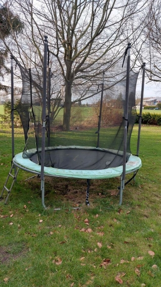 Verschenken Trampolin. Es hat Gebrauchs- bzw. Wetterspuren, ist aber völlig intakt.