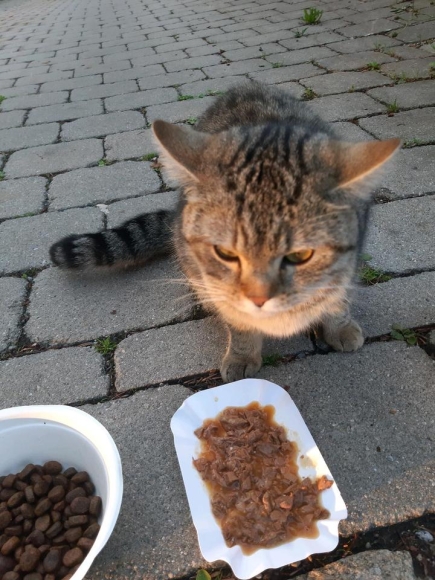 Kater in Traunstein zugelaufen, sehr hungrig und durstig.
