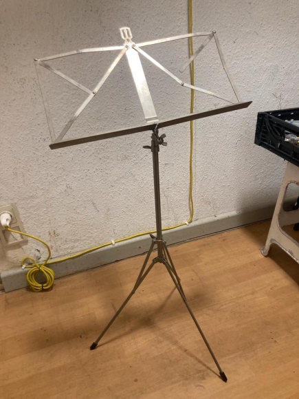 Ich verkaufe hier meinen Notenständer wegen nicht Benutzung. Der Ständer ist aus Metall (wahrscheinlich Alu) und sehr robust gebaut.