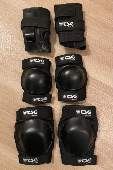 Verkaufe das Schonerset Basic Black der Marke TSG, Größe L, so gut wie neu und fast keine Gebrauchsspuren, siehe Foto 1.