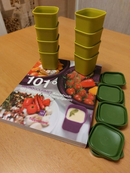 Verkaufe hier 8 Gartöpfchen von Tupperware für den MicroGourmet und das dicke Kochbuch für den MG. Buch hat leichte Gebrauchsspuren. Die Gartöpfchen sind Neu und unbenutzt. Zusammen hätte ich gerne 15 Euro plus Versand .