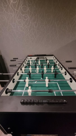 Zum Verkauf steht ein hochwertiger und voll funktionsfähiger schwarzer Ulrich Home Kickertisch inkl. Wechsellagersystem in nahezu unbenutztem Zustand. Er wurde maximal 15 Mal bespielt und weist keinerlei Gebrauchsspuren auf.