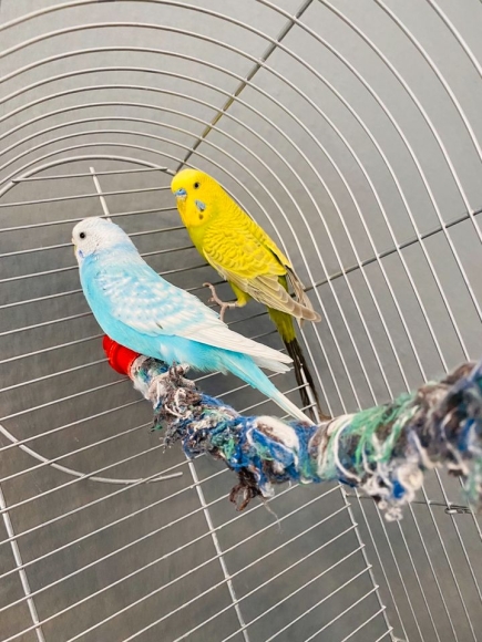 Verkaufe hier zwei wunderschöne Wellensittiche mit Käfig und Futt
