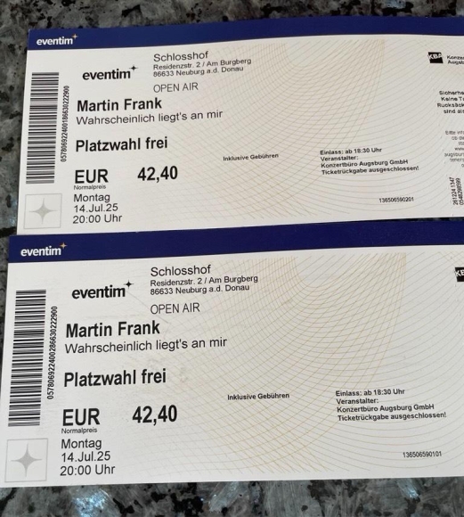 Verkaufe Karten „ Martin Frank“ 14.7.25