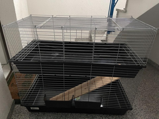 Das Gehege ist 117cm lang, 57 cm breit und 100 cm hoch wenn beide Gehege drauf sind