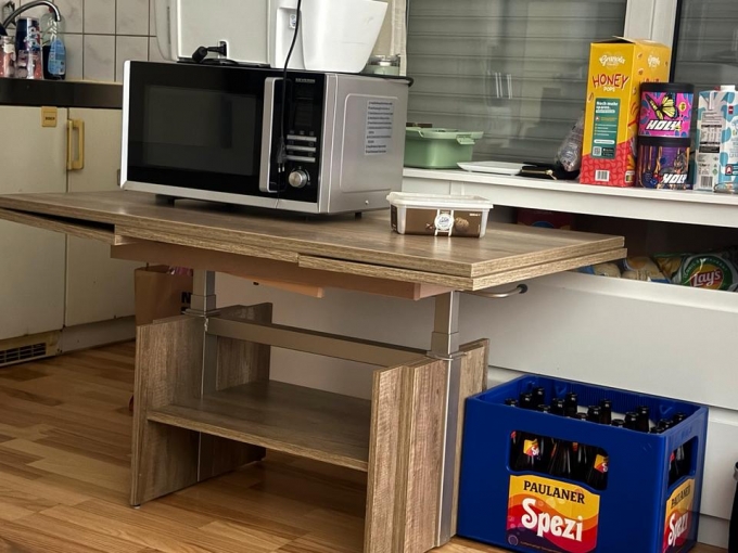 Hallo ich verkaufe ein Tisch man kann die Platte ausziehen und die Höhe verstellen macht mir gerne ein Angebot ohne Mikrowelle ohne Drucker