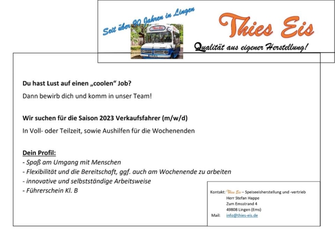 Verkaufsfahrer (M/W/D) / Eisverkäufer gesucht