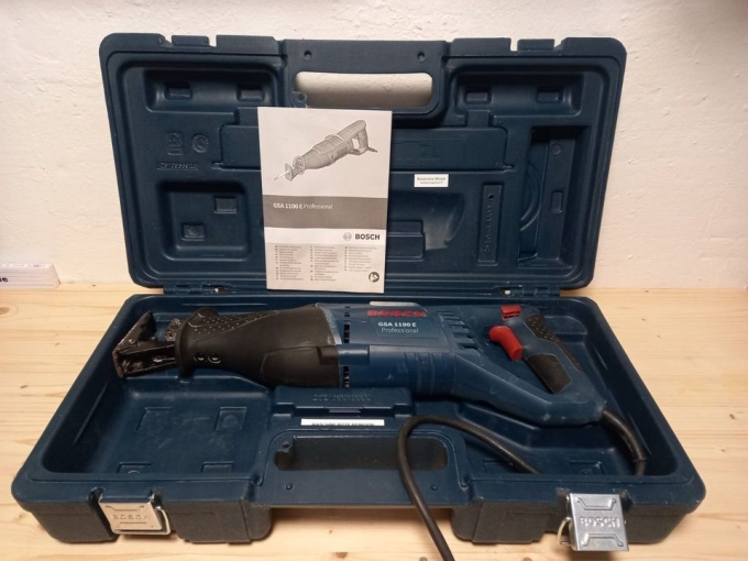 Zur Vermietung steht hier eine leistungsstarke Säbelsäge der Marke Bosch Professional zum Schneiden von Metall und Holz.