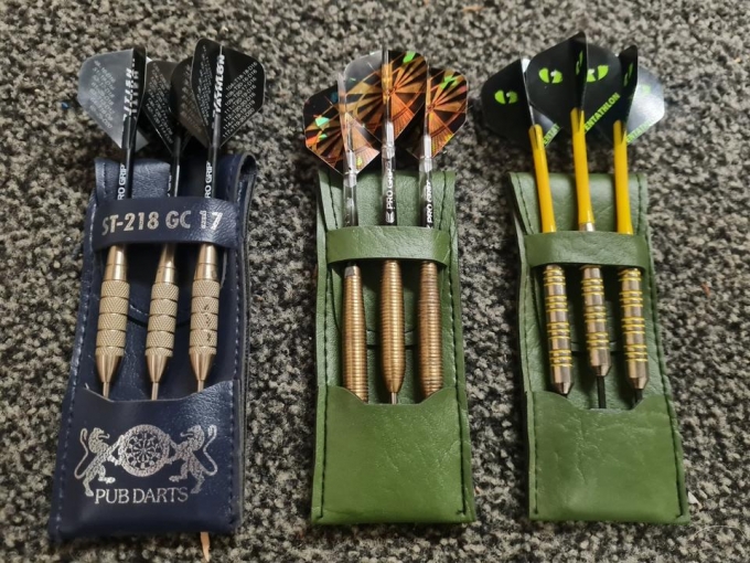 Biete hier 3 Steeldart Sätze an. Das Barrel Gewicht ist 2x 20g, 1x 21g.