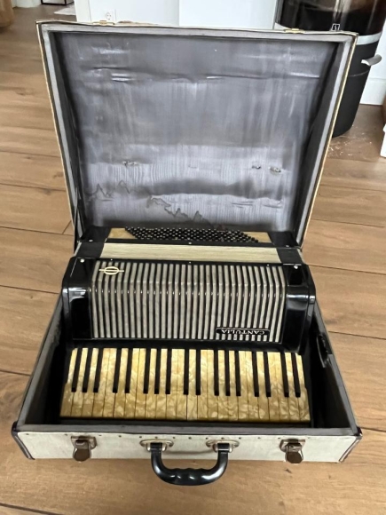 Zum Verkauf steht ein wunderschönes Vintage-Akkordeon der Marke Cantulia Senorita (Modellbezeichnung nicht gesichert). Ein tolles Stück für Sammler, Musiker oder Liebhaber nostalgischer Instrumente!