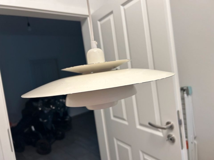 Vintage Danish Design Pendelleuchte in creme-weiß aus Metall.