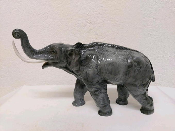 Ein Stoßzahn fehlt, ansonsten guter Zustand.