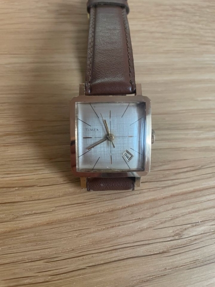 Ich biete hier eine Vintage Uhr (circa 70er Jahre) der Marke Timex. Die Uhr läuft an und die Datumsanzeige funktioniert ebenfalls.