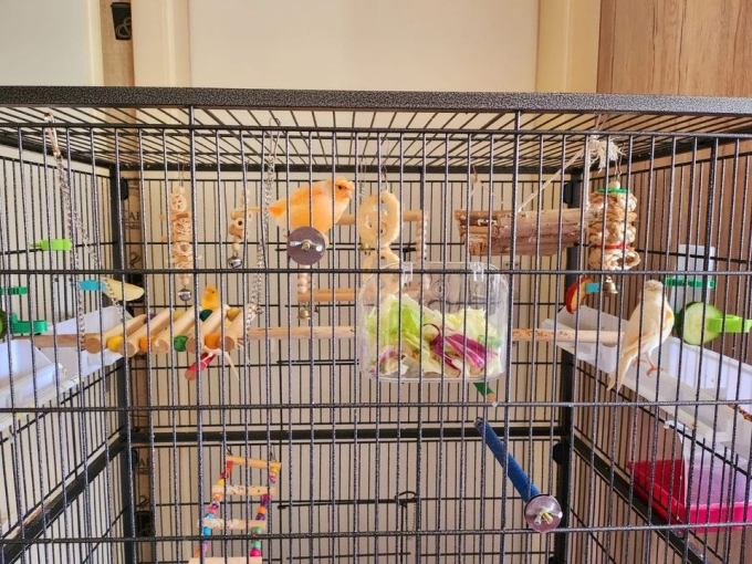 4 Vögel mit Zubehör und Futter abzugeben 3 Weibchen ein Männchen.