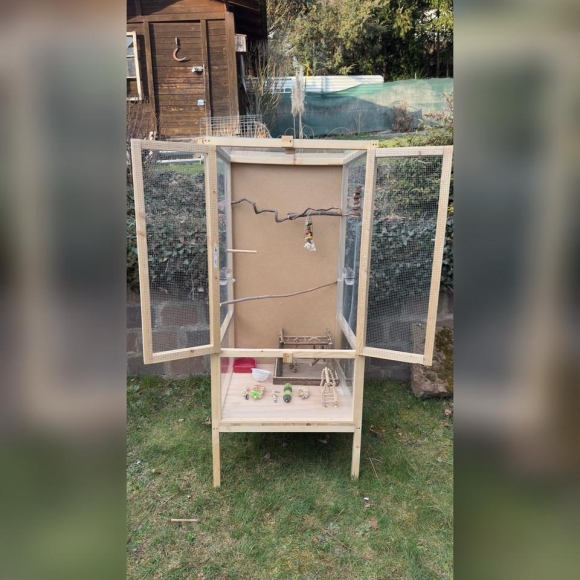 Mit dabei ist Vogelzubehör wie auf den Bildern zu sehen.