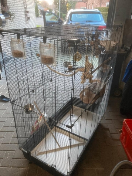 Verkaufe einen größeren Vogelkäfig mit Inventar.Er ist auf Rollen